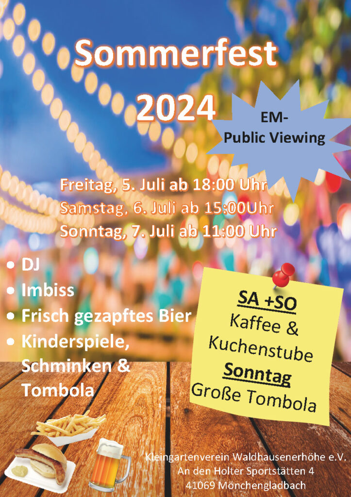 Ein herzliches Dankeschön geht an alle fleißigen Helfer und Helferinnen, die dieses Sommerfest möglich gemacht haben. Kinderschminken, Kinderspiele, Kaffee, Kuchen, Pommes, Currywurst, Getränke, Public Viewing, Kinderbimmelbahn, Musik und und und … ohne Euch wäre das nicht möglich gewesen. Und wir danken natürlich allen Besuchern und Besucherinnen, die das Fest mit ihrer Anwesenheit bereichert haben.